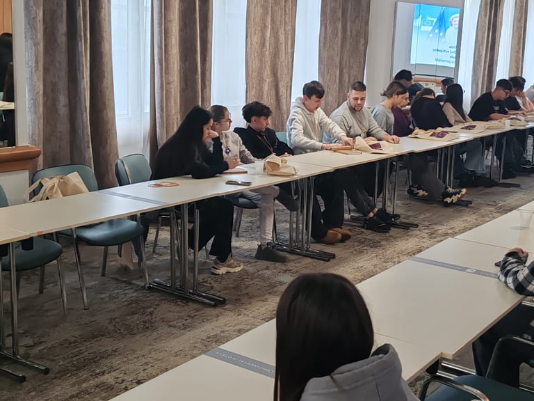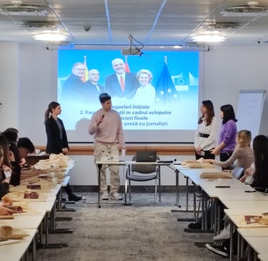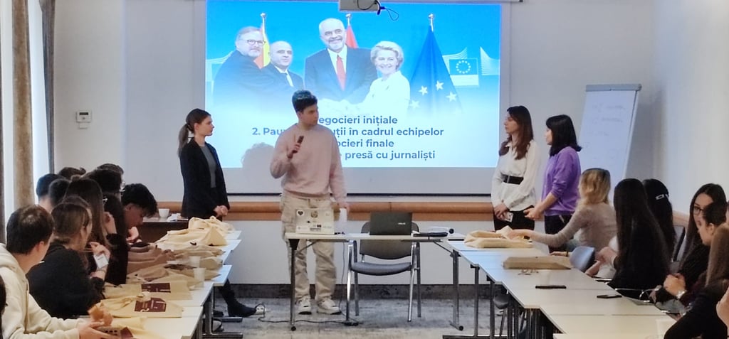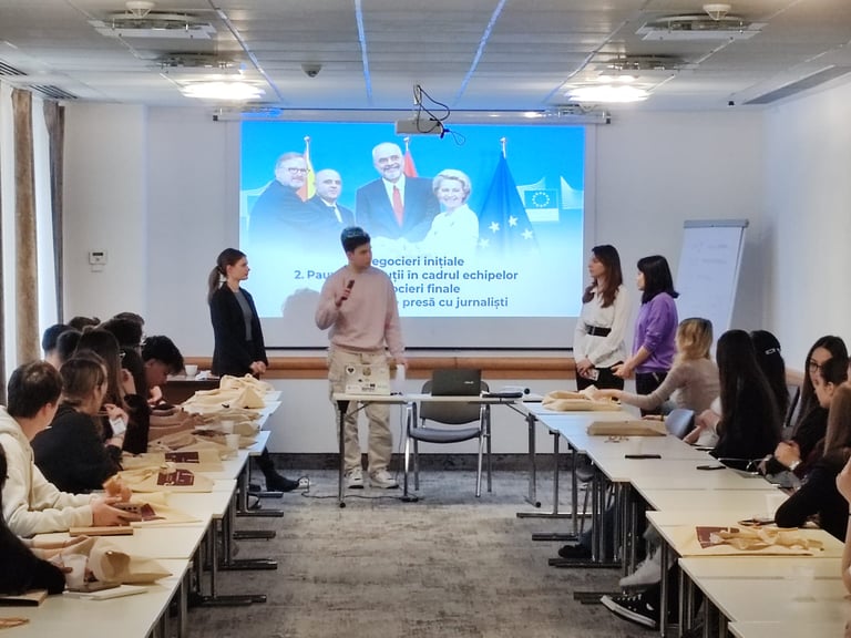 Prima mobilitate s-a desfășurat la Târgu-Jiu, Capitala Tineretului din România 2023 și a reunit 50 de tineri într-un program intensiv de formare. Unul dintre cele mai valoroase exerciții a fost simularea procesului decizional european, care a oferit participanților o perspectivă practică asupra modului în care funcționează instituțiile Uniunii Europene.