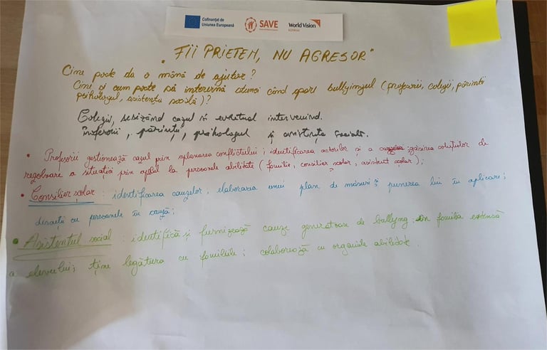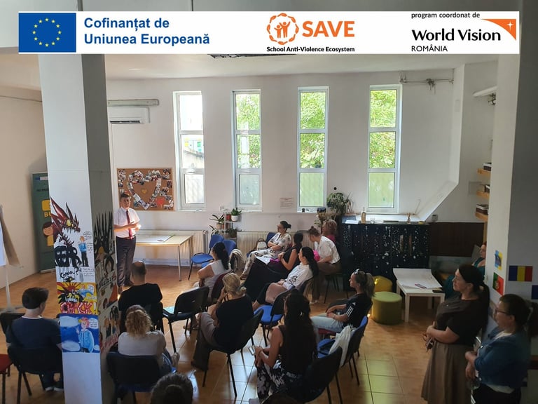 Întâlnirea a fost organizată de Asociația „Focus on Youth” în cadrul Proiectului „Fii Prieten, Nu Agresor!”, desfășurat între 1 martie – 31 octombrie 2025, parte din programul SAVE („School Anti-Violence Ecosystem”), coordonat de Fundația World Vision România și cofinanțat de Uniunea Europeană.