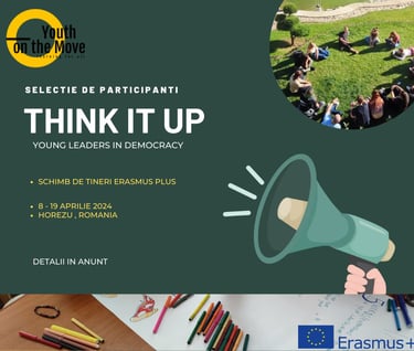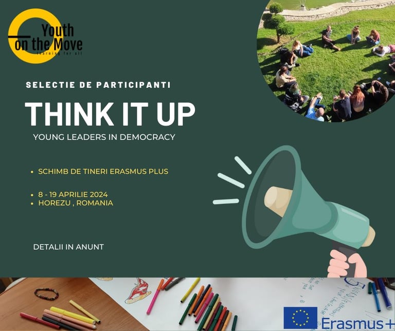 Asociația ”Youth on the Move” anunță deschiderea apelului de selecție pentru programul Think it UP! Young Leaders in Democracy, un schimb de tineri finanțat prin programul Erasmus+.